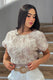 Blusa corta en tejido liviano con bordado floral y amarre posterior.
