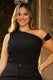Esta blusa asimétrica ha sido confeccionada en una tela de textura corrugada premium que garantiza un ajuste elástico y entallado al cuerpo. Su diseño único destaca por un escote de un solo hombro que se extiende en una elegante manga larga, dejando el otro brazo totalmente descubierto.