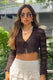 Blusa romántica y con estiloo bohemio. Esta blusa en tejido crochet tiene un corte crop, mangas largas y escote en V con amarre frontal, que le da un toque femenino y artesanal. Su diseño calado lo hace fresco, ideal para climas cálidos.