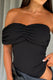 Body strapless, confeccionado en una tela de textura corrugada que ofrece un ajuste elástico, firme y muy cómodo al cuerpo. Destaca por su diseño de escote corazón con un drapeado central pronunciado que realza el busto y mangas cortas caídas que aportan un aire romántico y sofisticado.