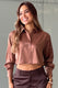 Camisa corta manga larga satin para mujer DF21027 dyaboo blanca cafe