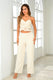 Set en compuesto por blusa corta de encaje con tiras delgadas y pantalón fluido de tiro alto.