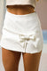 Falda-short con diseño elegante y coqueto. Cuenta con un lazo decorativo en un costado y corte cruzado en la parte delantera, que le da un efecto de falda pero con la comodidad de un short. Ideal para looks femeninos y chic.