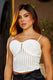 Top femenino tipo corset confeccionado en encaje texturizado con delicado patrón en líneas verticales que estiliza la silueta. Su diseño ajustado realza el busto gracias al escote en forma de corazón, mientras que los tirantes delgados aportan un toque elegante y minimalista. L