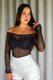 Body de manga larga en malla con fruncido frontal, elaborado enmalla elástica con forro suave.