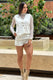 Conjunto elegante de chaleco estructurado con botones decorativos y short a juego, complementado con una blusa interna en malla translúcida para un look moderno y sofisticado.