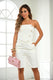 Set tipo strapless con botones dorados decorativos al frente y cinturón del mismo tono que realza la figura. Corte a la rodilla con un estilo elegante y moderno.