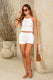 Conjunto de top halter y short con delicados bordados y volante en el borde inferior, ideal para un look fresco y femenino.
