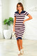 Vestido tejido de silueta ajustada con diseño de rayas horizontalesl. Cuenta con cuello tipo polo y mangas cortas, que le aportan un estilo moderno y casual.