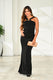 Elegante y sofisticado. Vestido largo negro con escote halter adornado con detalle dorado y silueta ajustada que realza la figura.