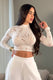 Esta blusa crop top de manga larga y cuello alto destaca por su diseño en tejido de encaje calado, que le da un aire sofisticado y moderno. Su ajuste ceñido al cuerpo y sus transparencias sutiles la convierten en una pieza versátil para cualquier ocasión. Es una opción ideal para looks elegantes o casuales con un toque de glamour.